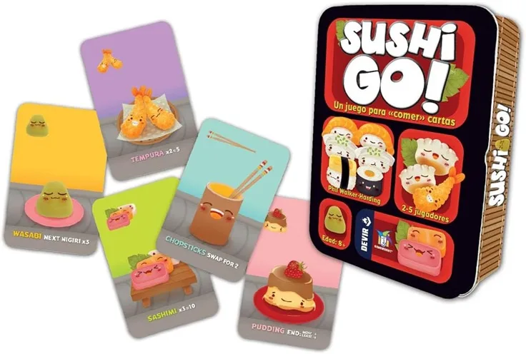 Sushi Go! es el punto de entrada más recomendable al draft como mecánica para grupos sin experiencia. La selección simultánea elimina el tiempo de espera entre turnos, el tema de sushi es visualmente atractivo para públicos que no se identifican con el hobby y el sistema de puntuación produce las combinaciones correctas sin requerir conocimiento previo del género.