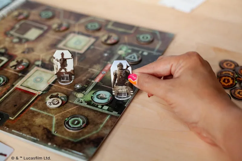 The Mandalorian: Adventures no usa una app. Esa es la primera cosa que importa decir sobre él en un catálogo donde varios cooperativos de licencias Star Wars dependen de una aplicación para funcionar. El tablero es un libro de mapas ilustrado con escenarios que recrean localizaciones de la primera temporada de la serie, y el comportamiento de los enemigos está determinado por cartas, no por inteligencia artificial externa.