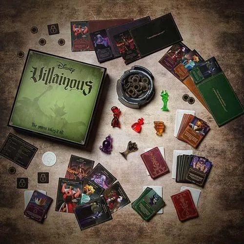 La caja de inicio del sistema con seis villanos clásicos: Maléfica, Úrsula, Jafar, Príncipe Juan, Reina de Corazones y Capitán Garfio. Seis estilos de juego completamente distintos con las mecánicas fundamentales del sistema. Es el punto de entrada correcto para cualquier grupo que quiera empezar con Disney Villainous.