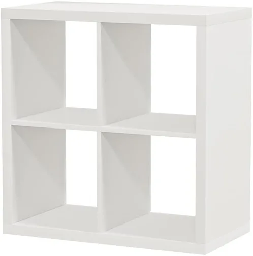 2×2 encima de otros muebles: para colecciones pequeñas o como extensión de almacenaje existente. El 2×2 tiene la altura justa para colocarse encima de una mesa o de otro mueble bajo.